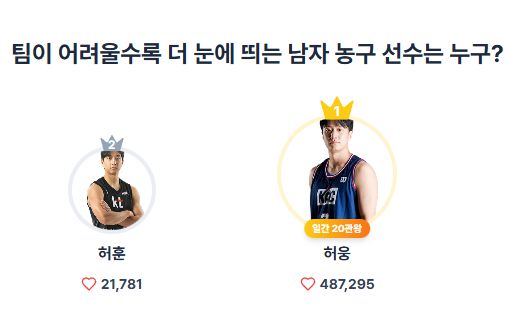 2위는 허훈이 차지했다. 표 차이는 있지만, 코트 위에서의 영향력과 팬덤 규모는 여전히 뚜렷하다.