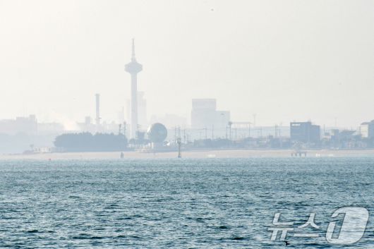 경북 포항시 송도해수욕장 상공이 희뿌연 미세먼지에 덮여있다. 이날 포항지역 미세먼지 농도는 50㎍/m³ 수준이다. 2026.1.4/뉴스1 ⓒ News1 최창호 기자 |
