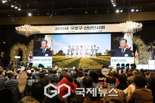 (서울=국제뉴스) 김서중 기자 = 구로구(구청장 장인홍)가 14일 오후 2시 신도림 테크노마트 그랜드볼룸에서 '2026년 구로구 신년인사회'를 성황리에 마쳤다.