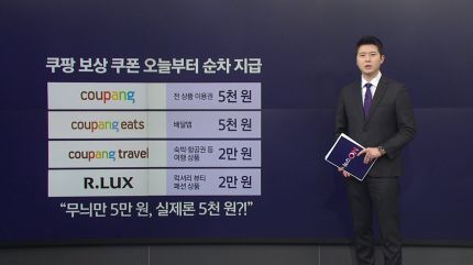 쿠팡 전 상품 이용권 5천 원과 배달앱 '쿠팡이츠' 이용권 5천 원, 그리고 여행상품을 파는 '쿠팡트래블'과 명품 플랫폼 '알럭스'에서 각각 2만 원씩 쓸 수 있는 쿠폰인데요.