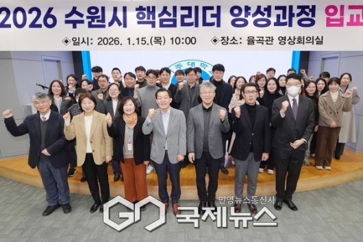 (수원=국제뉴스) 이운길·손병욱 기자 = 수원시는 15일 아주대학교 율곡관에서 '2026년 제12기 수원시 핵심리더 양성 과정 입교식'을 개최했다. 입교식에는 이재준 수원시장, 최기주 아주대학교 총장, 권혁성 아주대학교 공공정책대학원장, 6급 공무원 교육생 35명 등이 참석했다.