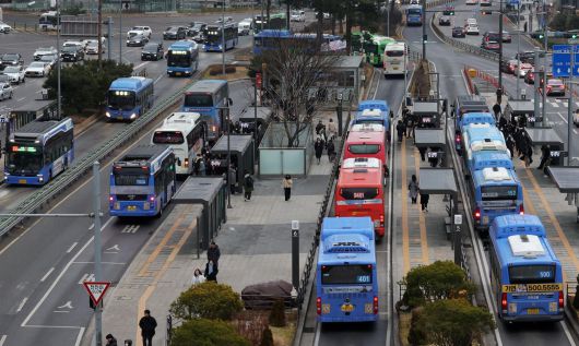 서울 시내버스 노사 간 임금 협상이 타결됨에 따라 정상 운행을 시작한 15일 오전 서울 중구 서울역 버스환승센터에 버스들이 운행하고 있다. 2025.01.15. 서울=뉴시스 |