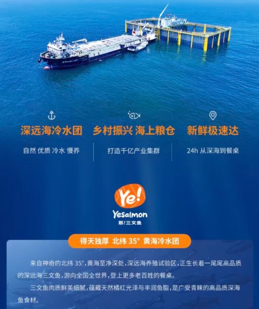 중국 온라인 쇼핑몰 타오바오 등에서 '예! 연어 (Yesalmon)'라는 수산물 브랜드를 검색하면 '북위 35도 황해(서해) 심해 양식 시험 구역에서 자란 고품질의 연어'라는 설명과 함께 생연어 제품이 판매되고 있다.