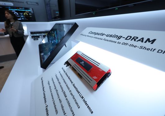 CES 개막 3일차인 8일(현지시간) 미국 네바다주 라스베이거스 베네시안 컨벤션센터 SK 하이닉스 부스에 디램 관련 제품이 전시돼 있다./연합뉴스 |