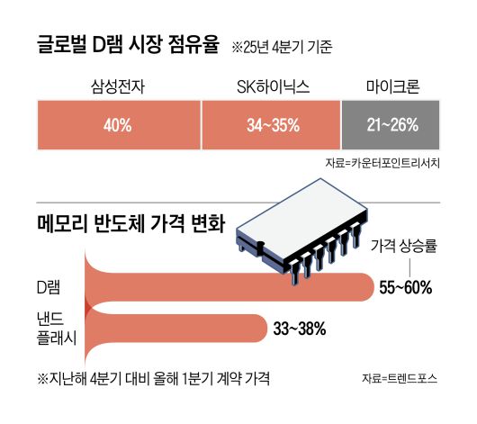 D램 가격은 가파르게 오르고 있지만, 공급 부족이 빠른 시일 안에 해소되기가 어려워 고객사들은 웃돈을 지불해서라도 물량을 확보하려는 분위기다. 트렌드포스는 “고객사들은 2026년 1분기 우선 구매권 확보, 향후 공급 부족 위험 완화 등을 위해 더 높은 가격을 지불할 의향이 있어 가격 상승세는 지속될 것”이라고 내다봤다.