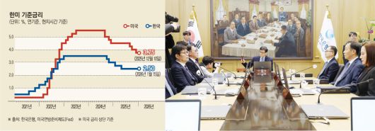 한국은행 금융통화위원회가 15일 기준금리를 연 2.50%로 전원일치 동결한 것은 고환율이 직접적인 영향을 미친 것으로 보인다. 연초 원ㆍ달러 환율이 다시 올라 1470선을 오르내리는 등 변동성이 큰 상황에서 금리까지 낮추면 원화 가치가 급락할 가능성을 우려한 결정으로 해석된다. 환율이 오르면 수입물가 등 전체적으로 물가가 상승하는 연쇄적인 부작용도 고려한 것으로 풀이된다.