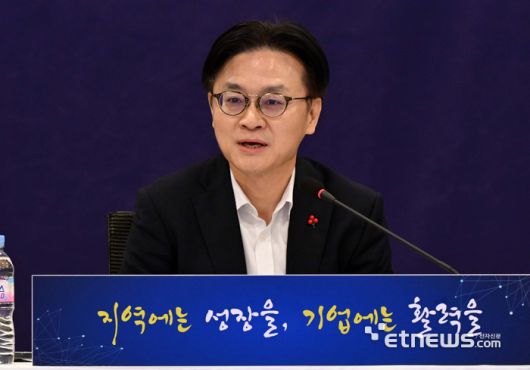 산업통상부 산업부문 공공기관 업무보고가 12일 서울 중구 대한상공회의소에서 열렸다. 김정관 산업통상부 장관이 모두발언을 하고 있다. 김민수기자 mskim@etnews.com |