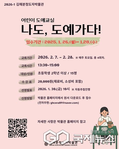 신청은 오는 26일부터 28일까지 김해분청도자박물관 누리집에서 신청원서를 내려받아 작성한 후 전자우편으로 접수하면 된다.