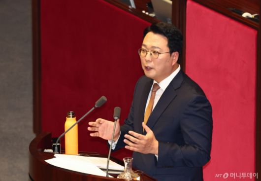 [서울=뉴시스] 김명년 기자 = 천하람 개혁신당 원내대표가 15일 국회에서 열린 본회의에서 '윤석열ㆍ김건희에 의한 내란ㆍ외환 및 국정농단 행위의 진상규명을 위한 특별검사 임명 등에 관한 법률안'에 대해 무제한 토론(필리버스터)을 하고 있다. 2026.01.15. kmn@newsis.com /사진=김명년 |
