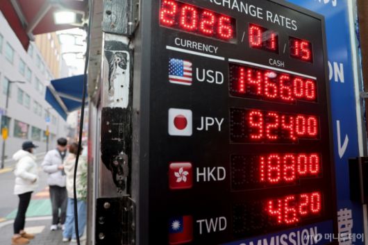 (서울=뉴스1) 이광호 기자 = 15일 오전 서울 중구 명동 환전소 전광판에 환율 시세가 나오고 있다. 연일 고점을 높이며 1480원 선에 근접했던 원·달러 환율은 스콧 베선트 미국 재무장관의 이례적인 구두 개입에 1460원선으로 후퇴했다. 2026.1.15/뉴스1 Copyright (C) 뉴스1. All rights reserved. 무단 전재 및 재배포, AI학습 이용 금지. /사진=(서울=뉴스1) 이광호 기자 |