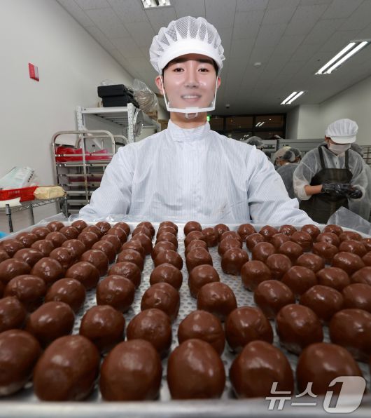 (김포=뉴스1) 이호윤 기자 = 이윤민 아워포지티비티 대표가 15일 경기 김포시 구래동 몬트쿠키 두바이쫀득쿠키(두쫀쿠)제작실에서 두바이쫀득쿠키를 들어보이고 있다. 두바이쫀득쿠키는 이윤민 대표가 운영하는 몬트쿠키에서 처음 만든 것으로 알려져 있다. 2026.1.15/뉴스1