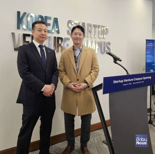 현지시간 1월 9일, 미국 실리콘밸리에서 열린 K-스타트업센터(KSC) 실리콘밸리 개소식 현장. 김영준 중진공 KSC 실리콘밸리 소장(왼쪽)과 조준상 차봇모빌리티 부대표(CFO). ⓒ차봇 모빌리티 |
