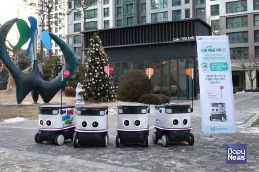 래미안 리더스원에 도입된 음식배달로봇. ⓒ삼성물산 |