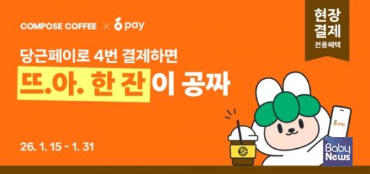 컴포즈커피가 국내 대표 지역생활 커뮤니티 플랫폼 당근의 간편결제 서비스 '당근페이’와 손잡고 특별 할인 프로모션을 진행한다고 15일 밝혔다.