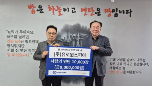 ㈜유로윈스피아는 겨울철 에너지 취약계층을 돕기 위해 연탄은행에 연탄 1만장을 기부했다고 15일 밝혔다.