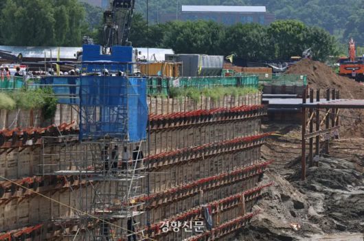 포스코이앤씨가 시공을 맡은 광명-서울고속도로 연장 공사 현장에서 전날 발생한 작업자 감전 사고와 관련해 경찰 관계자들이 경기 광명시 공사현장에서 합동감식을 하고 있다. 정효진 기자 |
