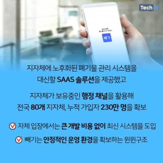 그가 이끄는 환경 플랫폼 '빼기'는 2020년 서비스 시작 이후 6년 만에 국내 최대 폐기물 관리 플랫폼으로 자리매김 했다. 올해는 이를 더 확대해 100곳의 지자체와 손잡고 400만 가입자를 넘어서겠다는 목표다.