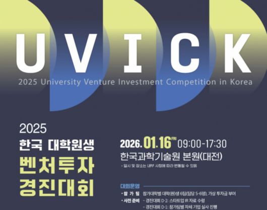 중소벤처기업부가 16일 카이스트 대전 문지캠퍼스에서 '전국 대학원생 벤처투자 경진대회'를 개최한다.