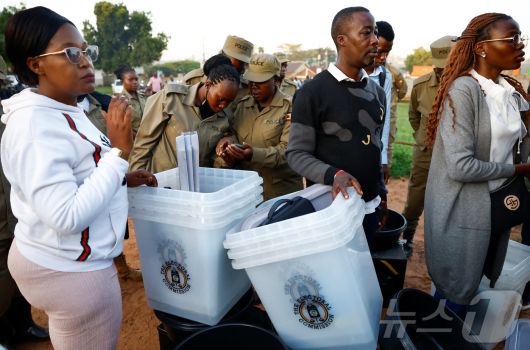 (와키소 로이터=뉴스1) 권영미 기자 = 15일 아프리카 우간다 와키소 지역에서 대통령 선거와 총선 개시를 앞두고 선거 관리 요원들이 선거 물품을 수령하고 있다.2026.01.15. ⓒ 로이터=뉴스1 Copyright ⓒ 뉴스1. All rights reserved. 무단 전재 및 재배포, AI학습 이용 금지.