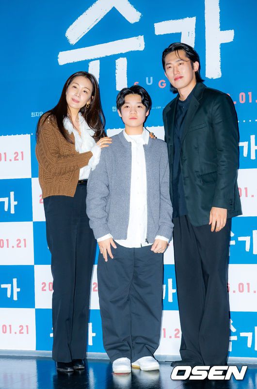 [OSEN=민경훈 기자] 15일 오후 서울 광진구 자양동 롯데시네마 건대입구에서 영화 '슈가' 언론배급시사회가 열렸다. ‘슈가’는 1형 당뇨 판정을 받은 어린 아들을 구하기 위해 고군분투하다 끝내 세상을 바꾸어 버린 한 엄마의 기적 같은 이야기를 그린 휴먼 드라마다. 배우 최지우, 고동하, 민진웅이 포토타임을 갖고 있다. 2026.01.15 / rumi@osen.co.kr