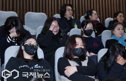 법안통과에 눈물 흘리는 12·29 무안공항 제주항공 여객기참사 유가족협의회