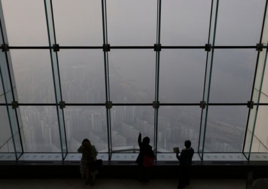 미세먼지와 초미세먼지 농도가 나쁨 수준을 보인 15일 서울 송파구 일대가 먼지로 뿌옇게 흐리다./사진=뉴시스 |