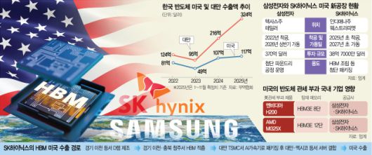 트럼프 대통령이 관세를 메모리반도체까지 확대해 부과할 경우 삼성전자와 SK하이닉스의 수출 환경은 급격히 악화할 수 있다. 전 세계 기업과 국가들이 AI 데이터센터 등 인프라를 구축하면서 AI 가속기와 메모리반도체 수요는 폭증하고 있다. 양 사도 이에 발맞춰 국내 공장을 풀가동하면서 수출 물량을 확대하고 있다. 지난해 대미 반도체 수출액만 약 138억 달러(20조 2800억 원)로 추산되는데 미국이 이에 대해 25% 관세를 부과할 경우 삼성전자와 SK하이닉스는 관세 비용 일부를 수입처에 전가하더라도 매년 수조 원을 추가 부담해야 할 가능성이 높다.