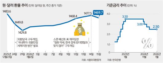 이번 금리 동결은 예견된 일이었다. 지난 연말 외환당국의 구두개입과 국민연금 환 헤지 등의 영향으로 1480원대에서 1420원대까지 떨어진 환율은 최근 다시 치솟아 1470원 선까지 왔다.