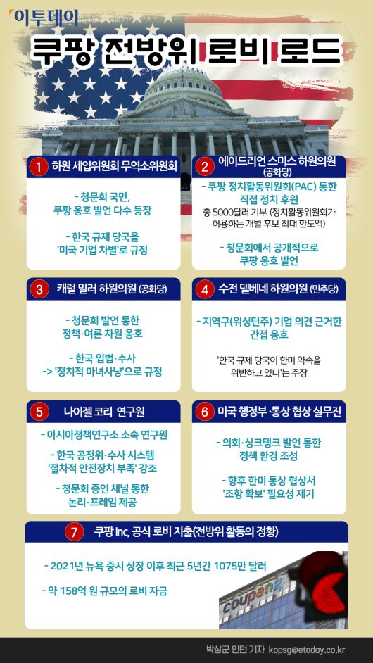 - 청문회에서 공개적으로 쿠팡 옹호 발언