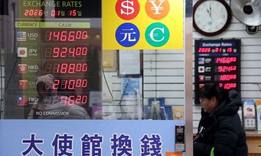 15일 서울 중구 명동 환전소 전광판에 환율 시세가 나오고 있다. 연일 고점을 높이며 1480원 선에 근접했던 원·달러 환율은 스콧 베선트 미국 재무장관의 이례적인 구두 개입에 1460원선으로 후퇴했다. 뉴스1 |