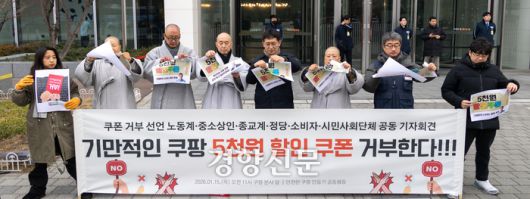 135개 시민·사회단체로 구성된 ‘안전한 쿠팡 만들기 공동행동’은 이날 서울 송파구 쿠팡 본사 앞에서 ‘탈팡’(쿠팡 탈퇴)과 쿠팡 쿠폰 거부 동참을 호소하는 기자회견을 열었다. 이들은 “구매이용권은 보상이라기보다 떨어진 매출을 끌어올리려는 영업전술일 뿐”이라며 “고객 의사와 상관없이 쿠폰을 사용하게 만드는 등 지급부터 사용까지 기만과 꼼수로 일관하고 있다”고 비판했다.