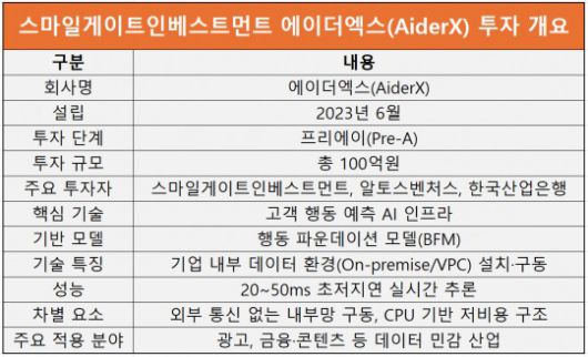 스마게인베스트먼트는 데이터 보안 우려 없이 고객 행동을 실시간 예측할 수 있는 기술 구조을 핵심 투자 포인트로 봤다. 외부 공용 모델 의존에서 벗어난 AI 내재화 흐름 속에서, 에이더엑스의 기술력이 산업 전반으로 확장 가능하다는 판단이다.
