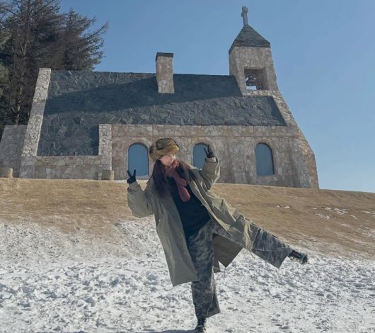설현은 15일 자신의 SNS에 “가족 강릉 나들이. 소담아 이모 어때? 귀여워! 냠”이라는 글과 함께 대관령 실버벨 교회를 배경으로 찍은 여러 장의 사진을 게재했다.