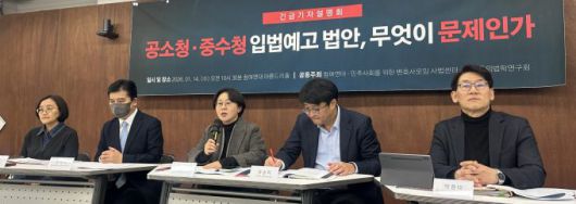 민주사회를 위한 변호사모임 사법센터와 참여연대, 민주주의법학연구회는 14일 '공소청·중수청 입법예고 법안, 무엇이 문제인가' 긴급기자설명회를 개최했다고 15일 밝혔다.