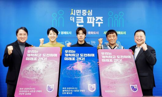 파주는 지난 1월 15일(목) 오후 3시 파주시청 접견실에서 김경일 구단주, 황보관 1호 단장, 이준석 1호 영입선수, 권예준 시즌권 1호 구매자, 박원섭 프리미엄석 1호 구매자, 목진원 시즌권 증정 이벤트 1호 당첨자와 함께 시상 이벤트를 진행했다.