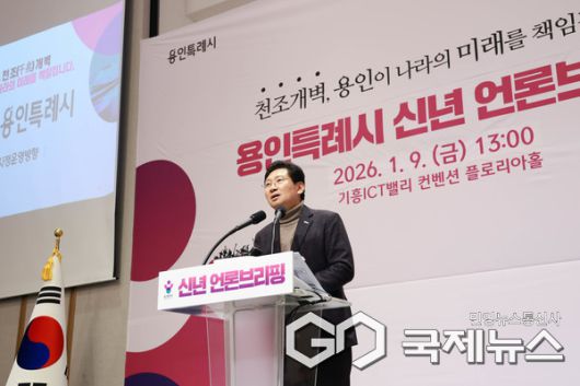 이상일 시장은 15일 서울행정법원이 환경단체의 국가산단계획 취소 청구 기각한 데 대한 입장을 밝혔다. 사진은 지난 9일 기흥ICT밸리에서 이상일 시장이 신년 언론브리핑을 하는 모습(사진=용인시) |