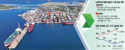 HD한국조선해양이 동남아 거점인 베트남과 필리핀 조선소의 생산능력을 확대한다. 원가 절감에 유리한 동남아 조선소에서 벌크선·탱커와 같은 저부가 선박 생산을 늘려 중국 조선기업들의 저가 공세에 대응하겠다는 전략이다.