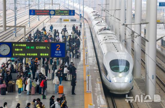 [베이징=신화/뉴시스] 중국 춘제 연휴 막바지인 지난해 2월 22일 중국 중부 허난성 뤄양에 있는 뤄양 룽먼 기차역에서 승객들이 기차를 타기 위해 기다리는 모습. 2025.02.23. |
