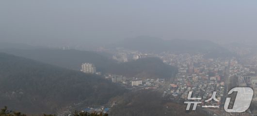 전북특별자치도 전역에 미세먼지 주의보가 발령된 25일 전북자치도 전주시 치명자산에서 바라본 도심이 미세먼지로 뒤덮여 있다. 2025.3.25/뉴스1 ⓒ News1 유경석 기자 |