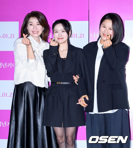 [OSEN=이대선 기자] 15일 오후 롯데시네마 건대입구점에서 영화 '나는 갱년기다' 언론시사회가 열렸다. '나는 갱년기다'는 영원한 소녀들의 두 번째 사춘기, 갱년기를 맞은 세 친구들이 몸과 감정의 변화를 맞이하는 과정을 그린 성장 드라마다. 유담연, 김영선, 전현숙이 포토타임을 가지고 있다. 2026.01.15 /sunday@osen.co.kr