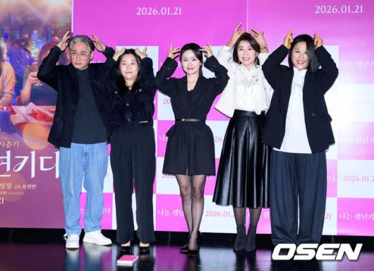 [OSEN=이대선 기자] 15일 오후 롯데시네마 건대입구점에서 영화 '나는 갱년기다' 언론시사회가 열렸다. '나는 갱년기다'는 영원한 소녀들의 두 번째 사춘기, 갱년기를 맞은 세 친구들이 몸과 감정의 변화를 맞이하는 과정을 그린 성장 드라마다. 성일, 조연진 감독, 김영선, 유담연, 전현숙이 포토타임을 가지고 있다. 2026.01.15 /sunday@osen.co.kr