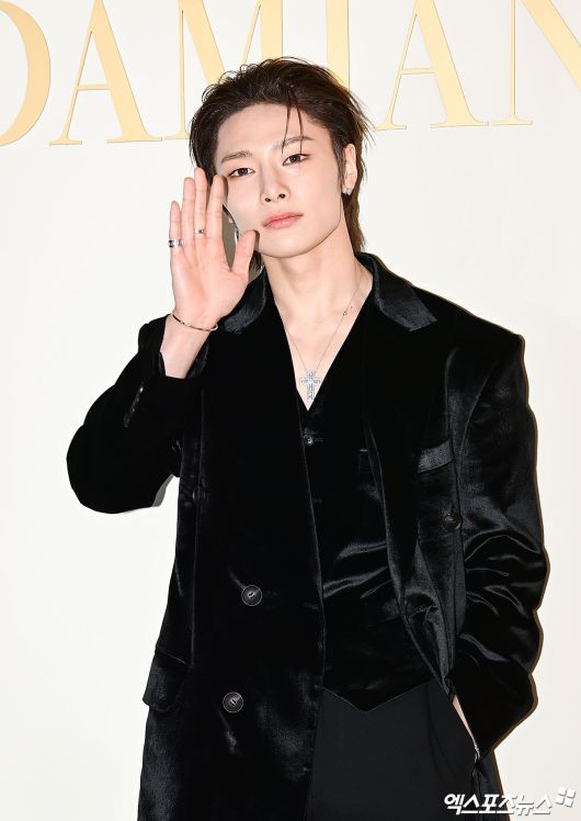 이날 행사에 참석한 스트레이키즈 아이엔이 포토타임을 갖고 있다.