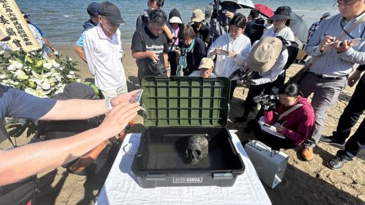 지난해 8월 일본 야마구치현 우베시 조세이해저탄광 수몰사고 현장에서 1942년 희생된 노동자 것으로 추정되는 두개골이 발굴돼 공개되고 있다. 우베/홍석재 특파원 forchis@hani.co.kr |