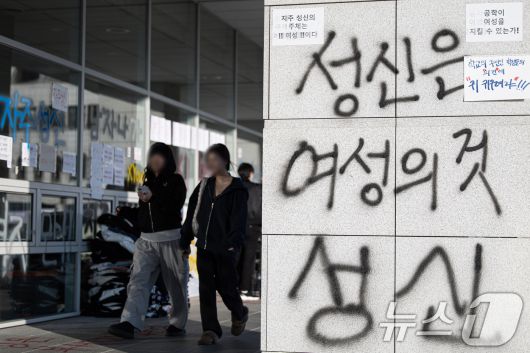 성신여대 학생들은 지난 2024년 11월 학교측이 국제학부에 남성 지원자의 입학을 허용한 것에 반발해 서울 성북구 돈암동 캠퍼스 내에서 래커칠 시위를 벌였다.