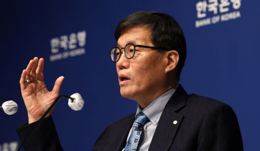 이창용 한국은행 총재가 15일 서울 중구 한국은행에서 열린 금융통화위원회 금리 결정에 대한 기자간담회에서 발언하고 있다. 공동취재 |