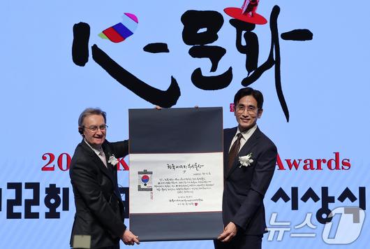 (서울=뉴스1) 김성진 기자 = 차인표 작가가 15일 서울 강남구 웨스틴 서울 파르나스에서 열린 제22회 한국이미지상 시상식에서 부싯돌상을 수상하고 있다. 2026.1.15/뉴스1ssaji@news1.krCopyright ⓒ 뉴스1. All rights reserved. 무단 전재 및 재배포, AI학습 이용 금지.