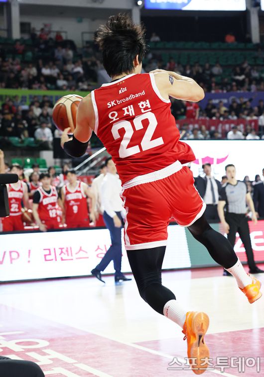 [스포츠투데이 권광일 기자] 2025-2026 LG전자 프로농구 서울SK와 창원LG의 경기가 15일 서울학생체육관에서 열렸다. 서울SK 오재현이 몸을 날려 패스를 하고 있다. 2026.01.15. [스포츠투데이 권광일 기자 sports@stoo.com]