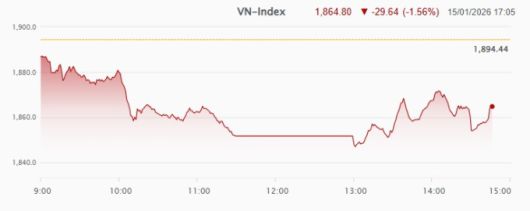[방콕=뉴스핌] 홍우리 특파원 = 15일 베트남 증시는 하락했다. 호찌민 VN지수는 1.56% 내린 1864.80포인트, 하노이 VN지수는 0.06% 하락한 253.16포인트로 거래를 마쳤다.