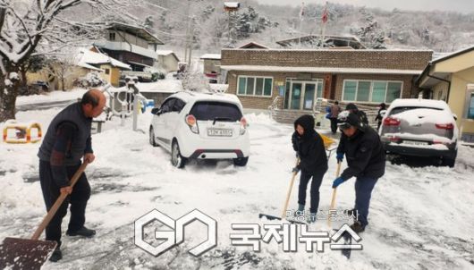 영주시 봉현면, 주민과 직원이 제설작업을 하고 있다(봉현면 제공) |