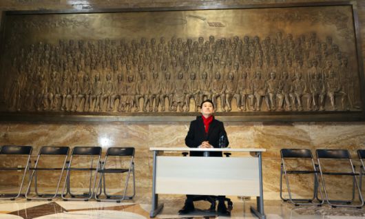 ▲국민의힘 장동혁 대표가 15일 국회 제헌국회의원상 앞에서 공천헌금·통일교 특검 수용을 촉구하며 단식에 돌입하고 있다. ⓒ연합뉴스 |